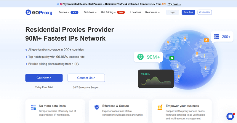 I’ve been pleasantly surprised by GoProxy during my tests, especially when I needed to simulate traffic from specific international locations. Their network is massive, boasting over 90 million IPs from real residential networks, which gives it a strong edge in authenticity for certain tasks. The connection speeds were consistently reliable for me, with quick response times that made browsing and data fetching feel smooth. They even offer a fantastic 7-day free trial, a no-risk way to get a real feel for the service.